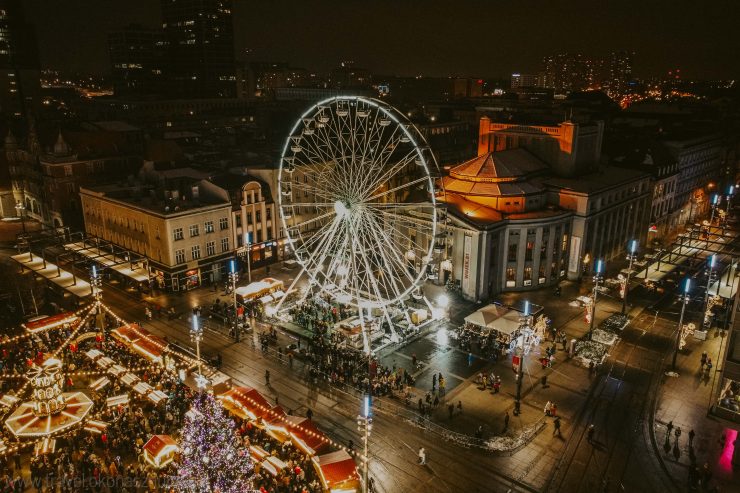 Nowy dworzec autobusowy w Katowicach sprawił, że uśmiech nie schodził mi z ust przez cały dzień, nawet jak okazało się, zaraz po dotarciu na Nikiszowiec, że Jarmark Bożonarodzeniowy na Nikiszowcu odbył się w ubiegły weekend 😀 Tłumy na katowickim rynku były odstraszające, tym bardziej biorąc pod uwagę obecną sytuację, więc chętnie oddaliliśmy się nieco żeby nagrać materiał dronem. Przepiękne ozdoby świąteczne na około, kolejka do Diabelskiego Młynu, rozświetlone restauracje, napis Katowice przy którym koniecznie musiałam zrobić sobie zdjęcie i wiele innych atrakcji czeka na gości w każdym wieku. Zauważyłam również coś, czego nie ma na wrocławskim Rynku podczas Jarmarku, a mianowicie całą masę miejsc, w których można zrobić sobie zdjęcie i tak dla przykładu były to sanie św. Mikołaja, karoca z samych światełek, ogromny misiek z miejscem do siedzenia ulokowany pod olbrzymią choinką, dwa wielkie Dziadki do orzechów witające nas od progu i wiele innych. Jeśli chodzi o ceny, to były one niestety zbliżone do tych wrocławskich, ale momentami minimalnie niższe. Na pewno wybór potrwa był większy, bo można było kupić np. barszczyk z uszkami, natomiast grzane wino w pamiątkowych kubkach kosztowało dokładnie 15zł plus kaucja za kubek.
